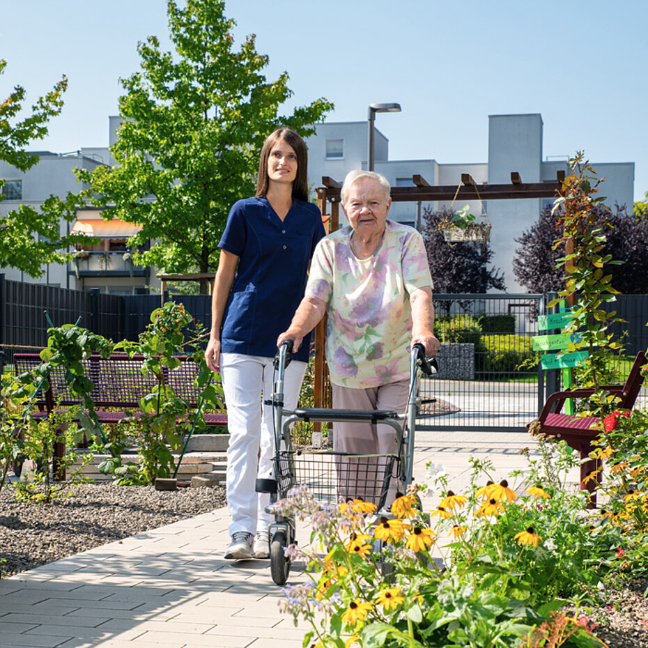 Auf die Pflege und Betreuung durch unsere Mitarbeitenden können Sie sich verlassen. Wir sind für jeden da, genauso wie er oder sie es gerade wünscht und braucht – von der Pflege und Unterstützung bis zur helfenden Hand bei Alltäglichem. Außerdem sind Ehrenamtliche bei uns im Haus aktiv und für die Bewohner*innen da, vom Pläuschchen im Zimmer bis zum Spaziergang im Garten.